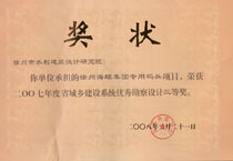 《海螺集團(tuán)碼頭》07年度省城鄉(xiāng)系統(tǒng)優(yōu)秀勘察設(shè)計(jì)三等獎(jiǎng)